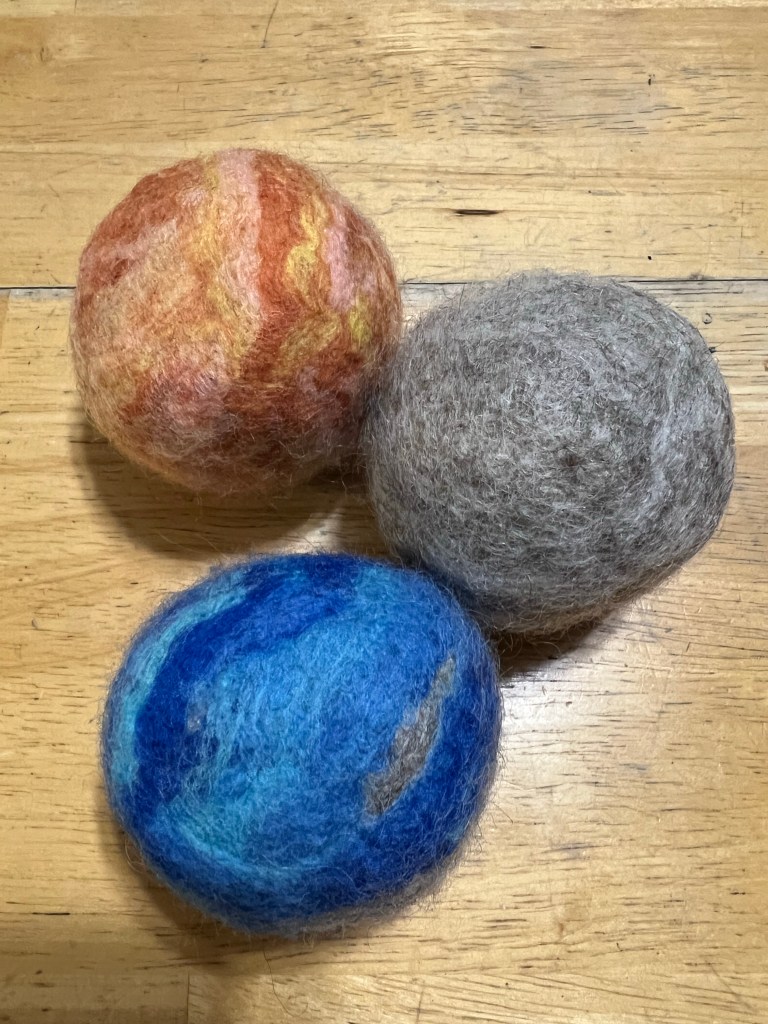 The process of making these dryer balls is actually fun and stress relieving. Also another way of using some of the wool roving I have and making them into a sustainable, and environmentally safe way for use. I have several in my laundry and love them and will be having some to sell in my shop soon on Etsy and my shop at nexusknits.com.