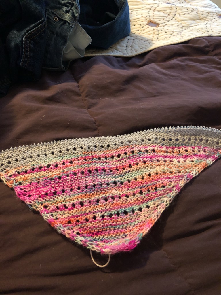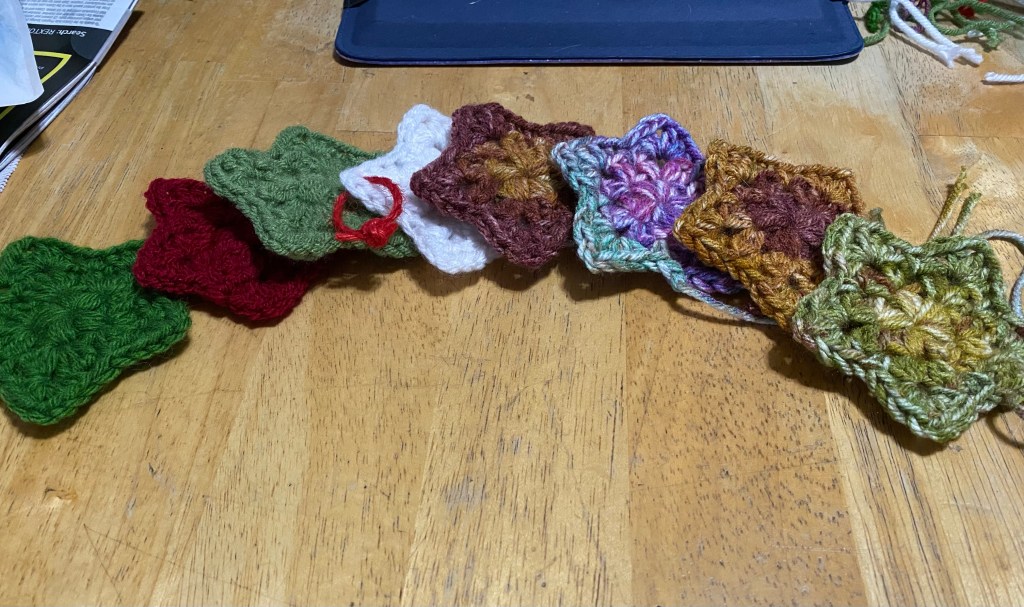 Now on to my thoughts of my craft today. As I continue to work on gifts and some winter projects. Do you know what the word bicrafty means? It means someone who is able to work on two craft skills. I would say that I am a bicrafty person. I enjoy working with crochet and knitting. Though if I add being a spinner too would that make me a tricrafter? Maybe. What do you think? Of course these all fall under the category of fiber arts. There are many other options that fall under that genre. I can pretty much say I will never be bored with this field of crafts. There’s always more to learn and create. Also, no matter how old you are you can work this skill. From young kids to older adults like my 94 year old aunt who has gotten back into knitting after a long time. She picked it back up during the pandemic and made nine shawls so far this last year.